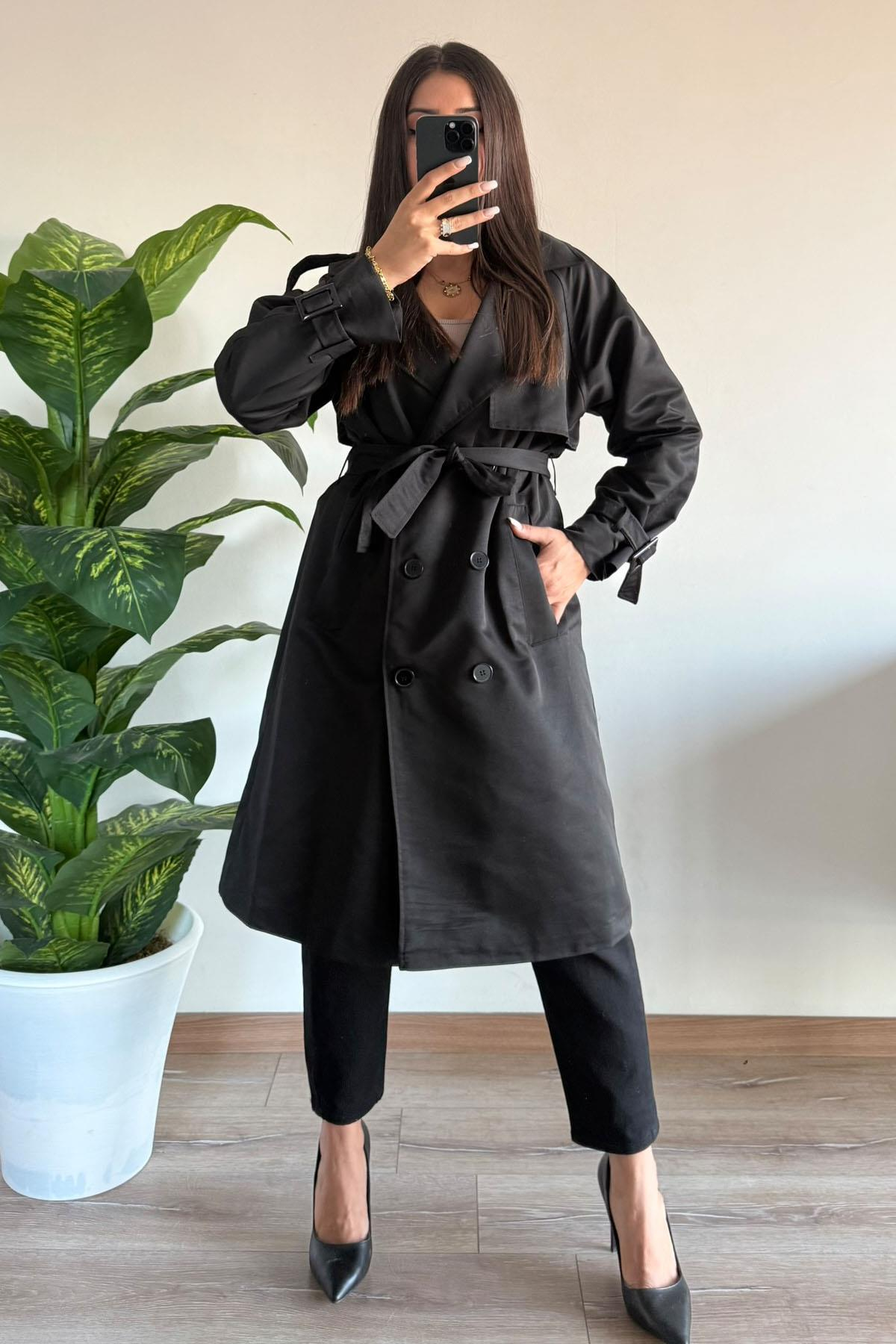 Cidde Kadın Aller Detay Uzun Trençkot SIYAH