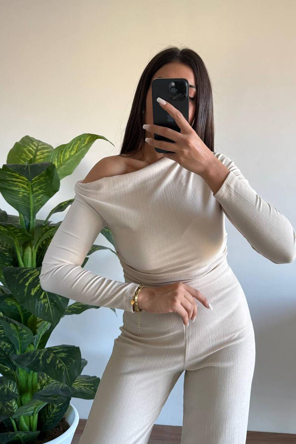 Cidde Kadın Drape Detay Kayık Yaka Bürümcük Takım TAS