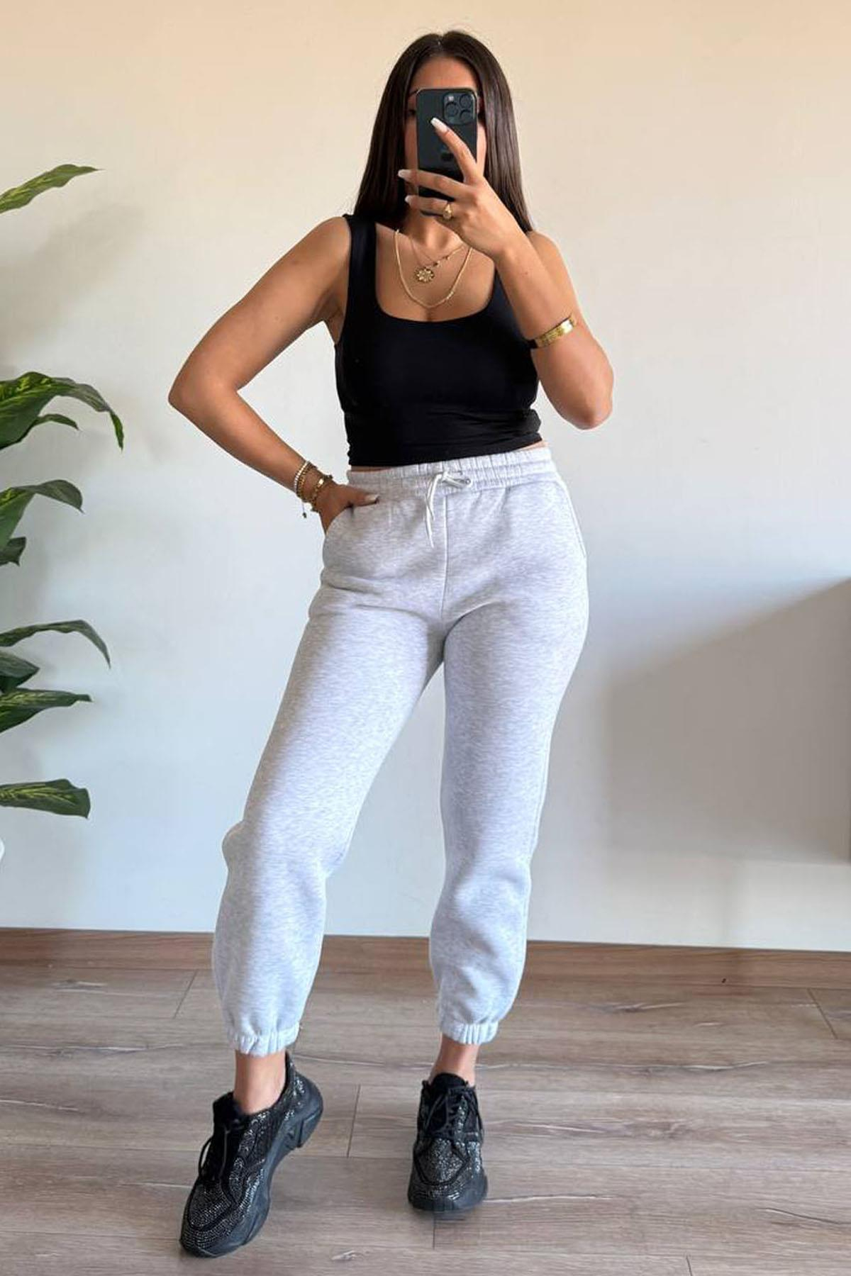 Cidde Kadın Kışlık 3 İplik  Kalın Içi Polarlı Yüksek Bel Paçası Lastikli Basic Jogger Eşofman  GRI