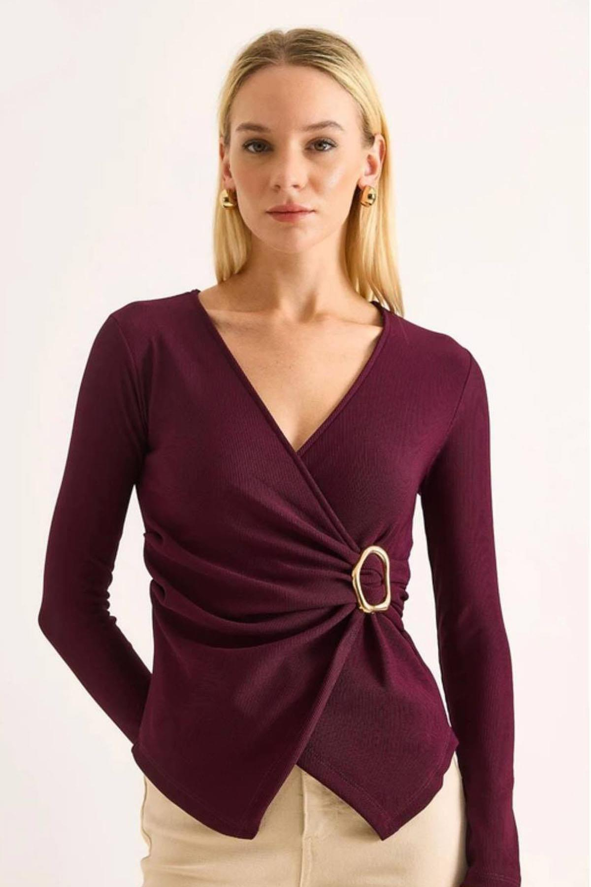 Cidde Kadın Kruvaze Uzun Kol Tokalı Bluz BORDO