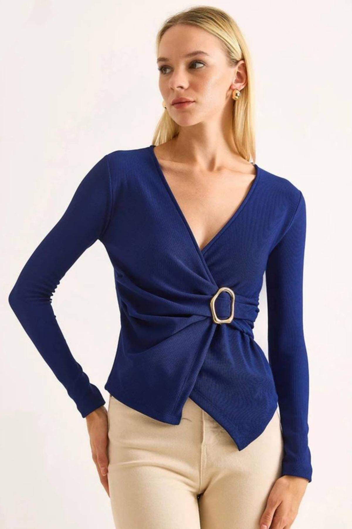 Cidde Kadın Kruvaze Uzun Kol Tokalı Bluz LACIVERT