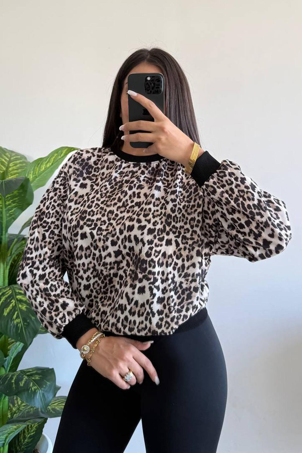 Kadın Leopar Desenli Sweat KAHVERENGI (CD-02083.KAHVERENGİ.S-8559)