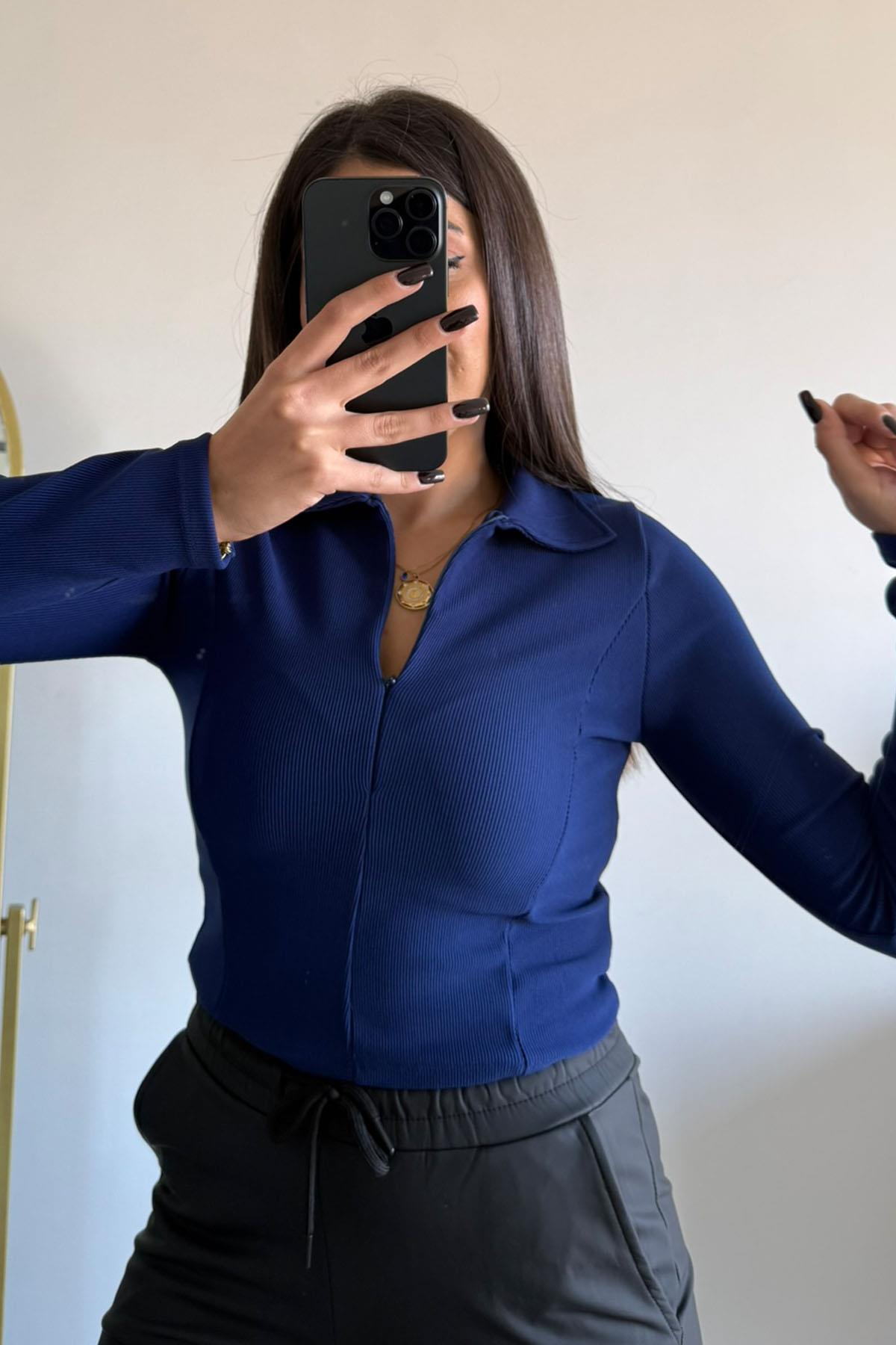 Kadın Ottoman Kumaş Gizli Fermuarlı Gömlek Yaka Buluz LACIVERT (CD-2271.LACİVERT.S-8807)