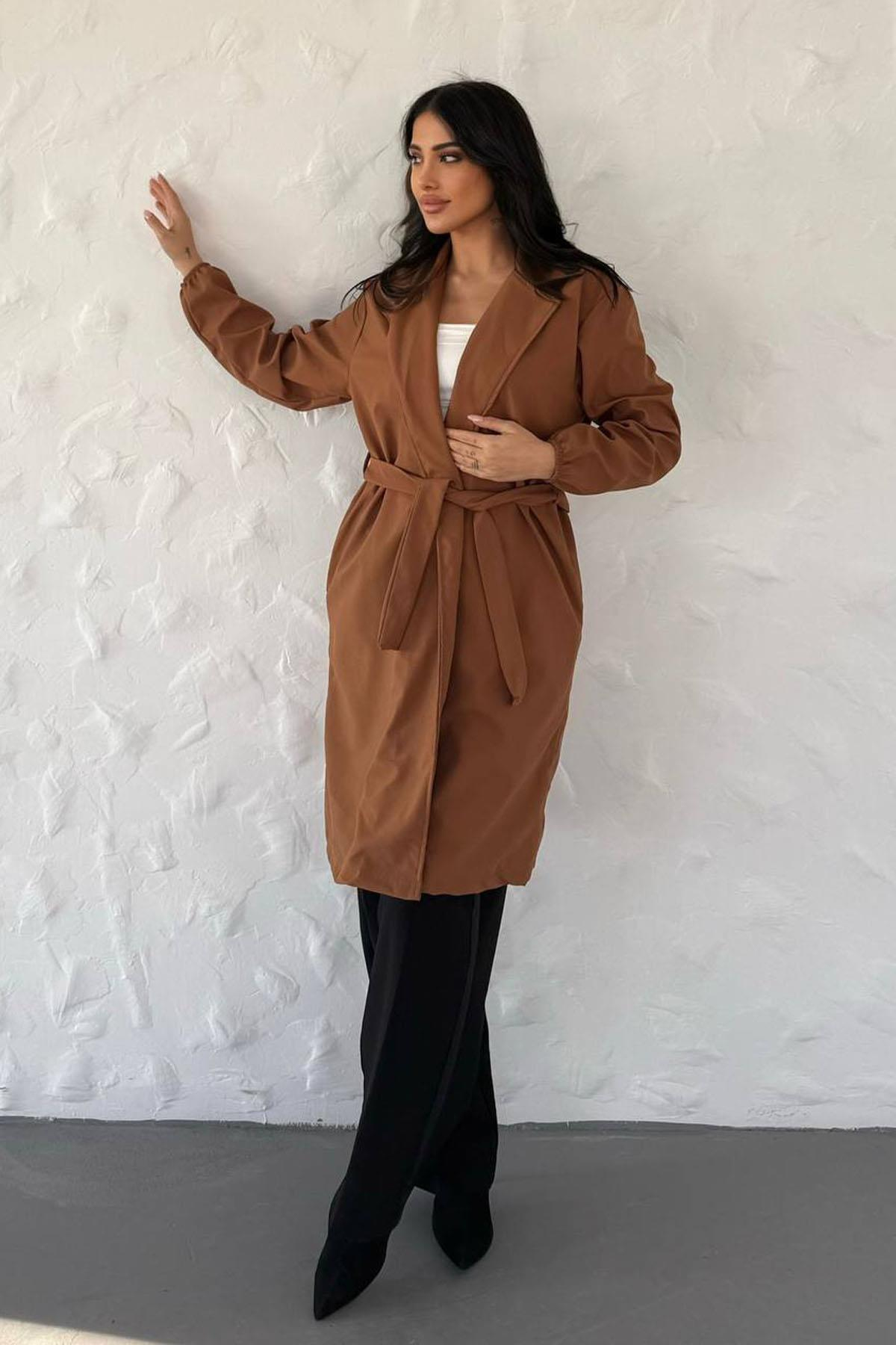 Kadın Trençkot Astarsız Kuşaklı Uzunluk 93 cm CAMEL (CD-5901.CAMEL.S-8719)