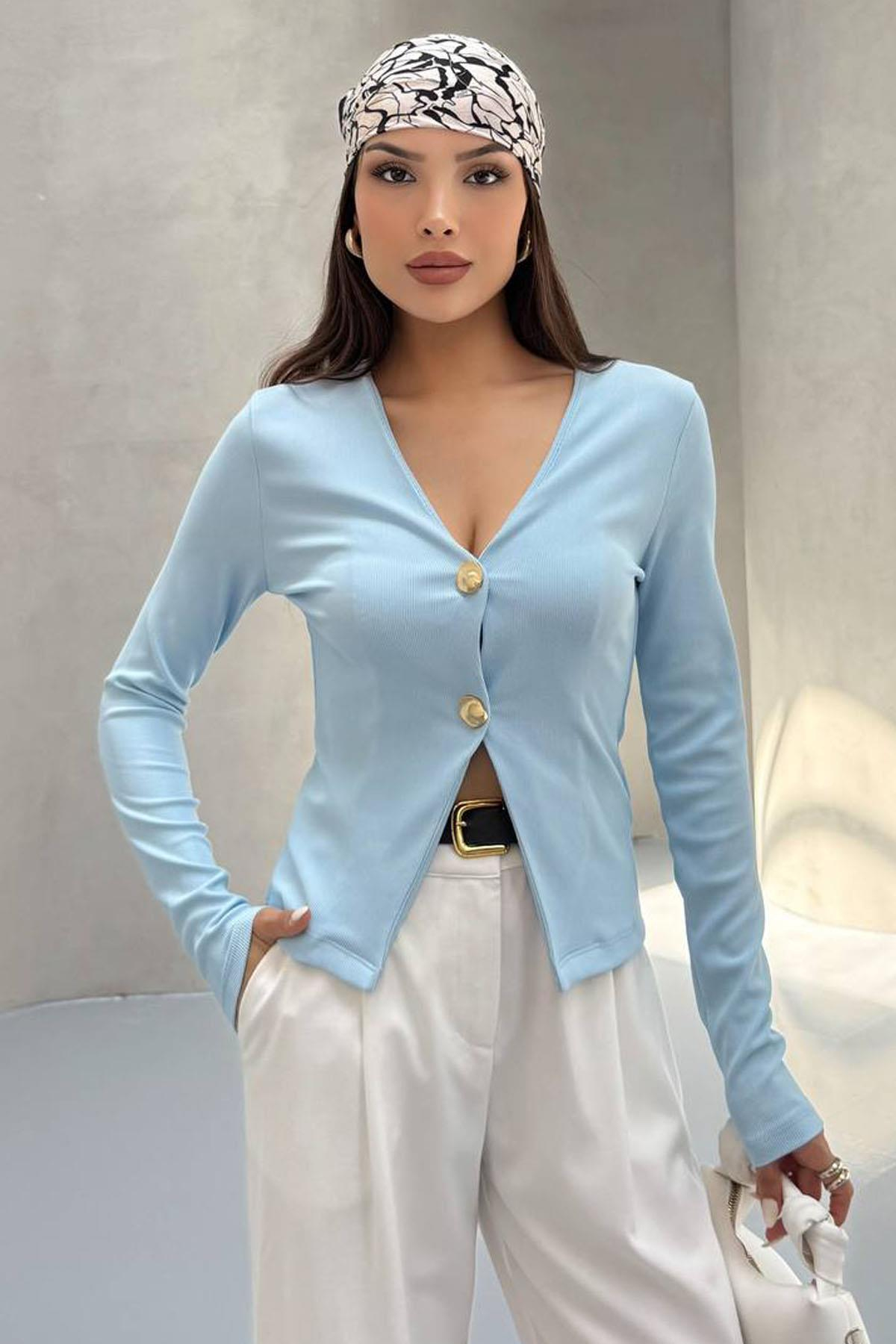 Kadın V Yaka Düğmeli Hırka Bluz MAVI (CD-13993.MAVİ.S-8762)