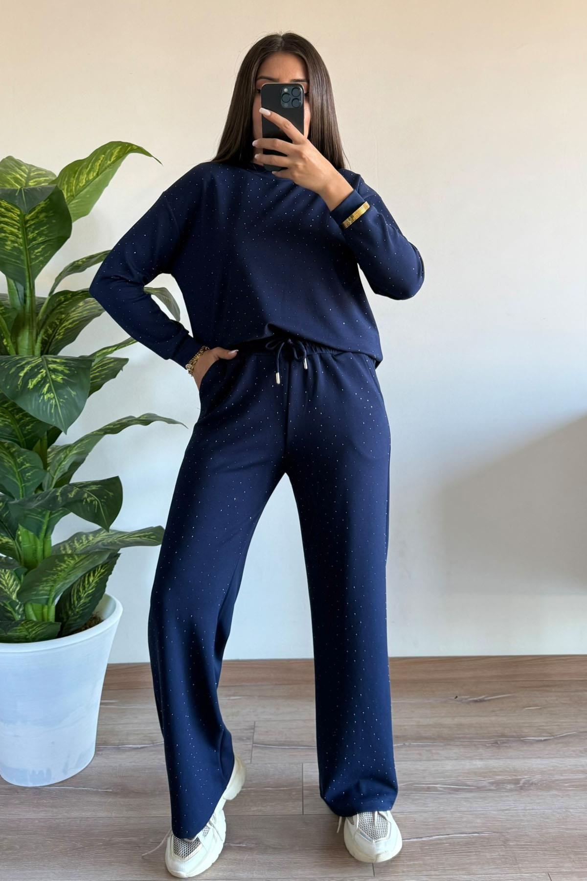 Cidde Kadın Vip Kalite Ful Taşlı Modal kumaş Eşofman Takımı  LACIVERT