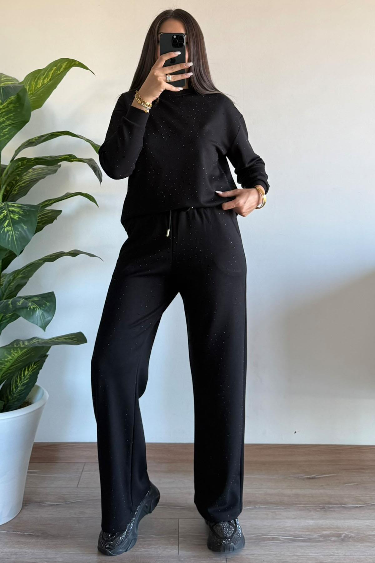 Cidde Kadın Vip Kalite Ful Taşlı Modal kumaş Eşofman Takımı  SIYAH