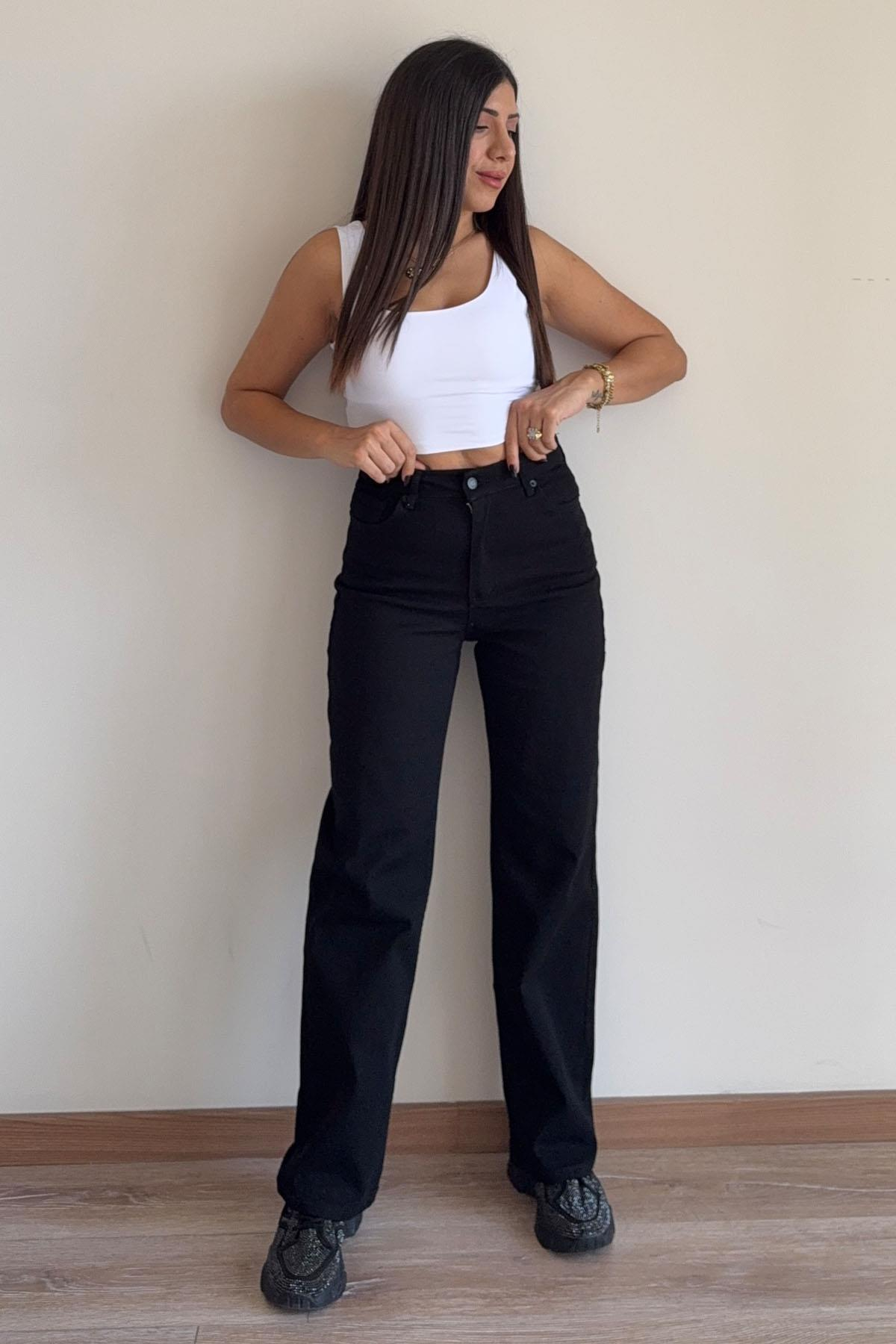 Kadın Yüksek Bel Likralı Salaş Paça Palazzo Model Jean Denim Kot Pantolon (CD-20502.SİYAH.34-8838)