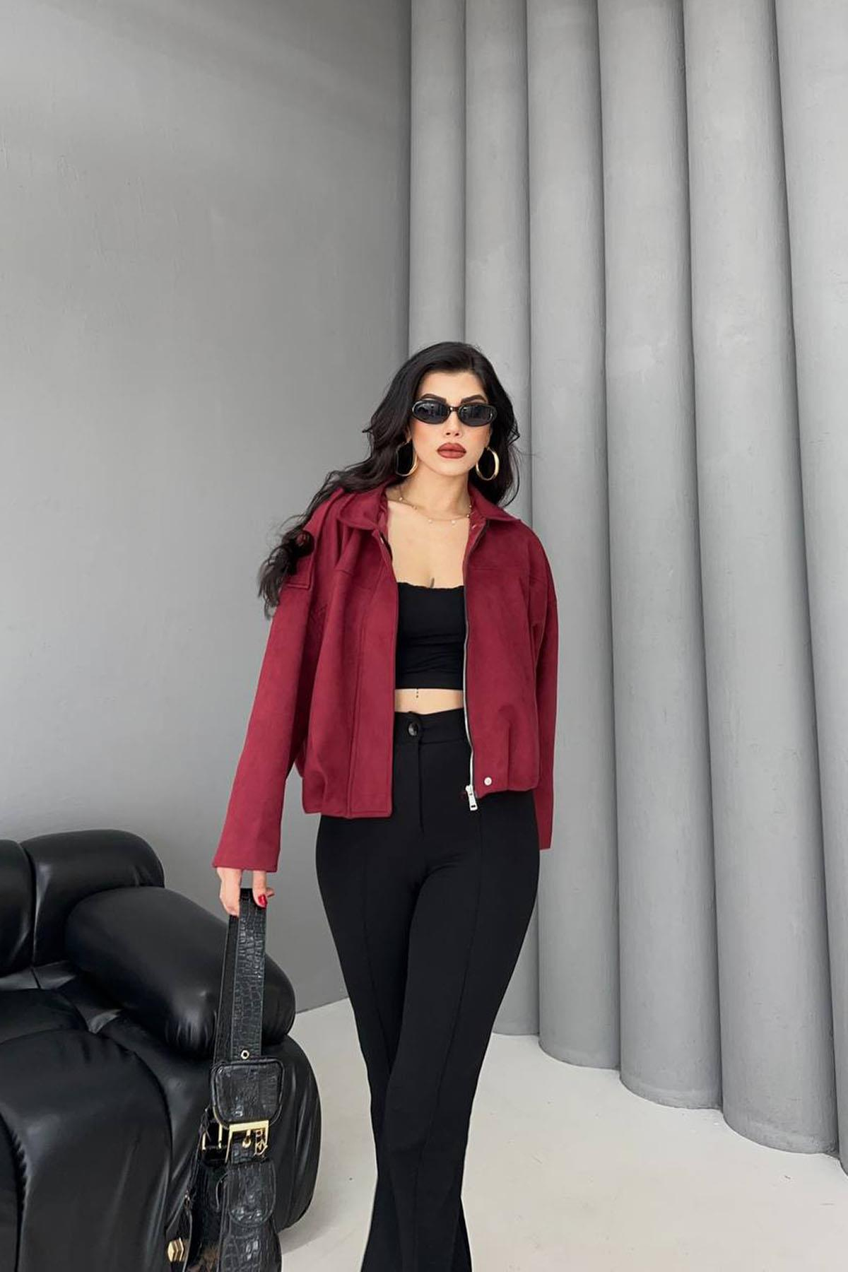 Kadın ZR Model Süet Bomber Ceket BORDO (CD-2661.BORDO.S-8630)