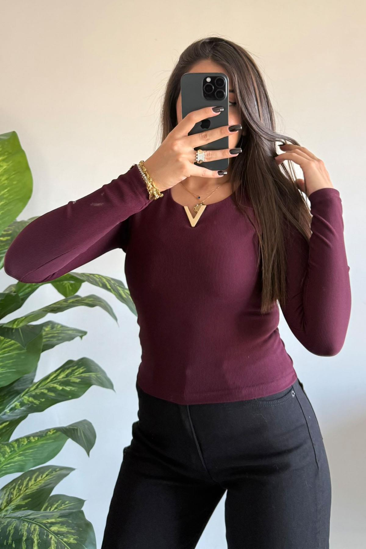 Kaın Yaka Metal Ottoman Kumaş Body Bluz BORDO (CD-2278.BORDO.S-8678)