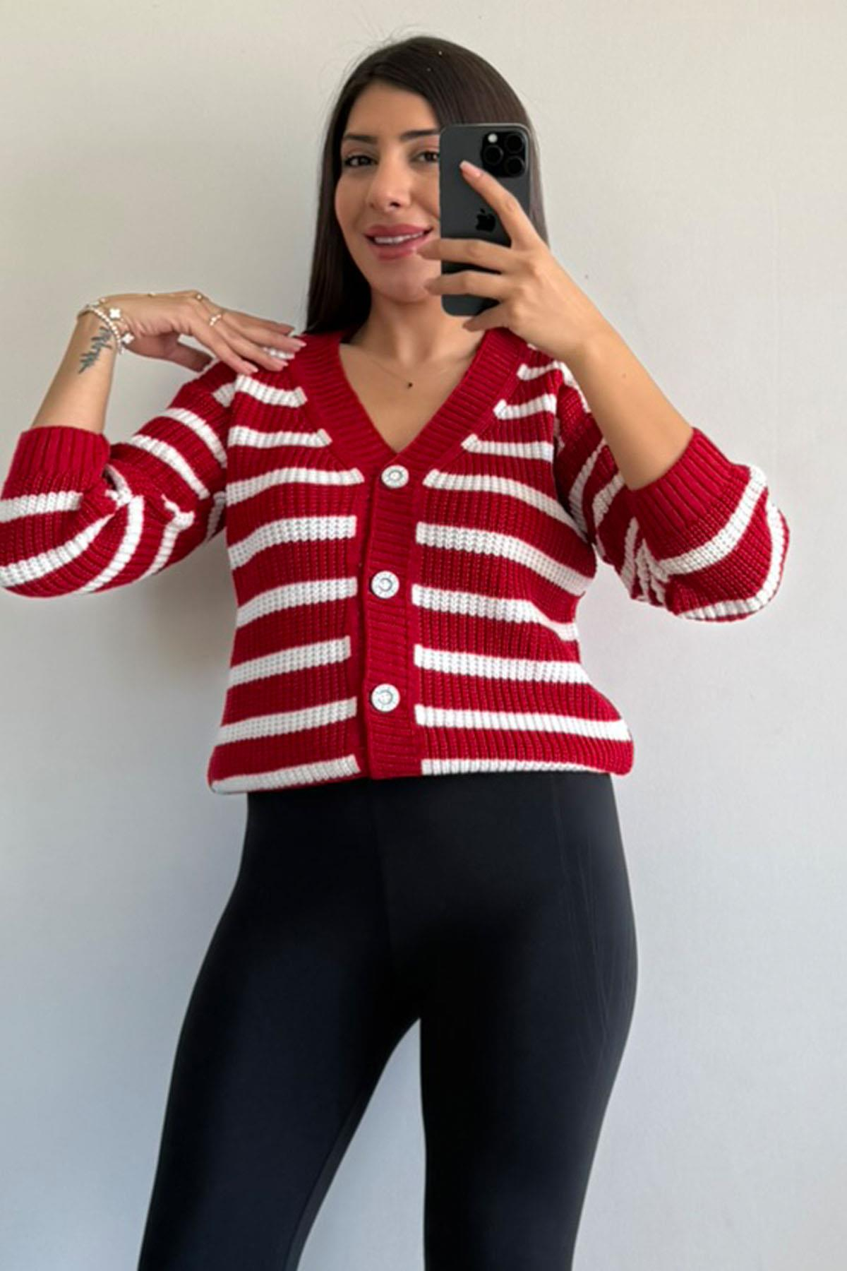 Kadın Çizgili Örme Hırka Ceket KIRMIZI (CD-7201.KIRMIZI.STANDART-9019)