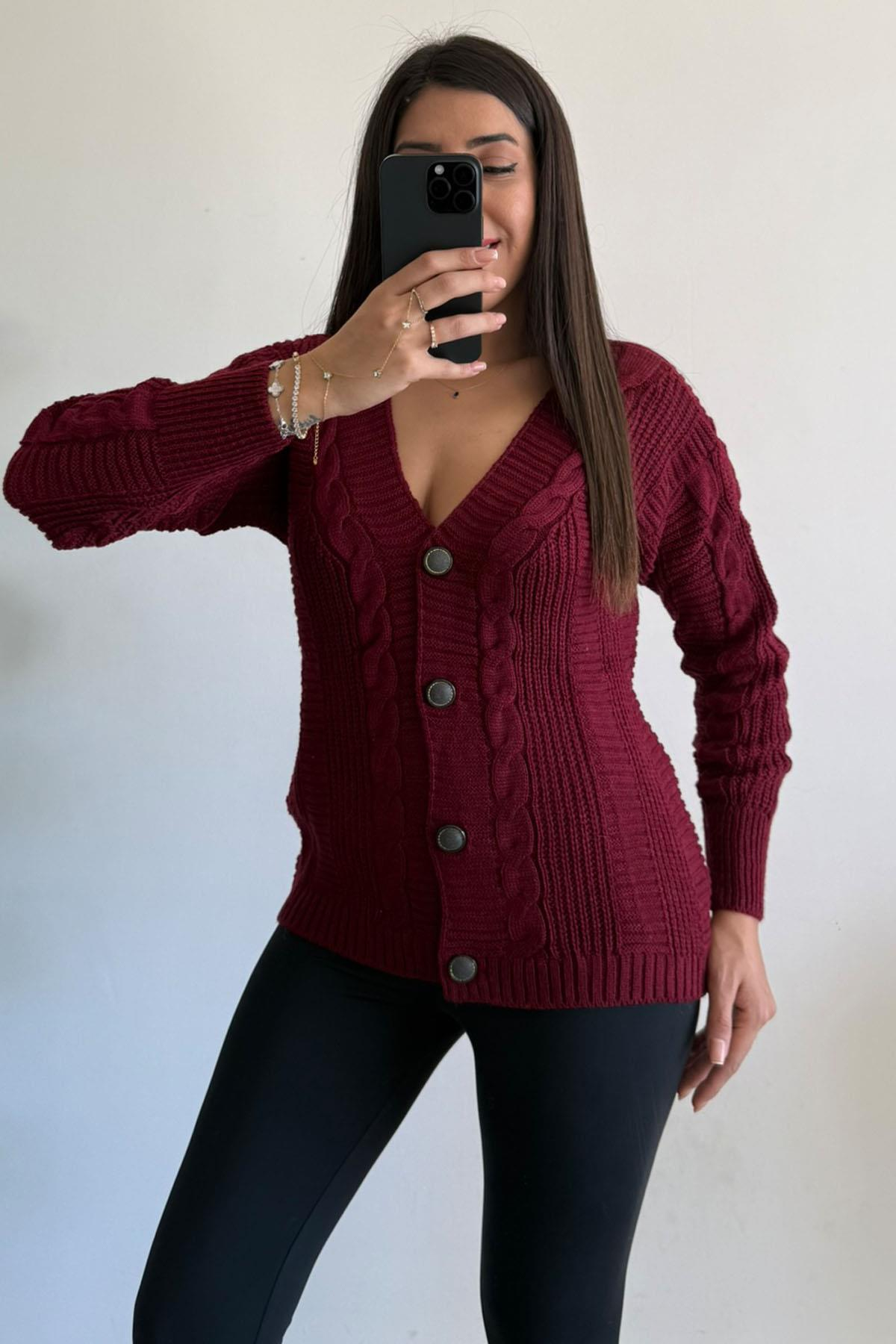 Kadın Saç Örgülü Triko Ceket Hırka BORDO (CD-7302.BORDO-9028)